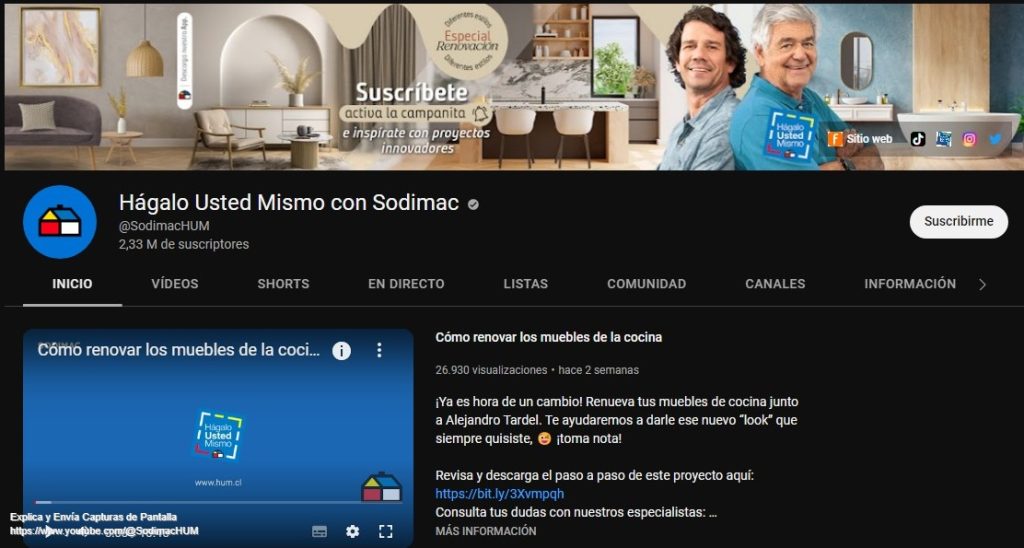 Lo mismo ha hecho su competidor Sodimac que también enseña a su público objetivo a renovar muebles de cocina, enseñando carpintería o mampostería aprovechando con esta información útil dar a conocer las diversas herramientas y accesorios que puede utilizar y que se adquiere en sus tiendas.